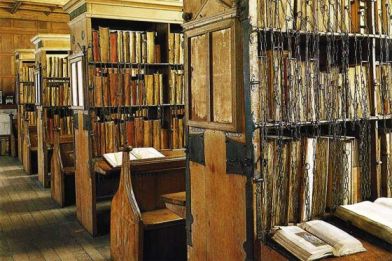 Umas das extremidades da corrente se fixava na capa de cada livro, a outra, numa barra existente na parte inferior de cada prateleira. Permitia que o livro fosse conduzido a uma mesa destinada à leitura, mas não que fosse levado da biblioteca.