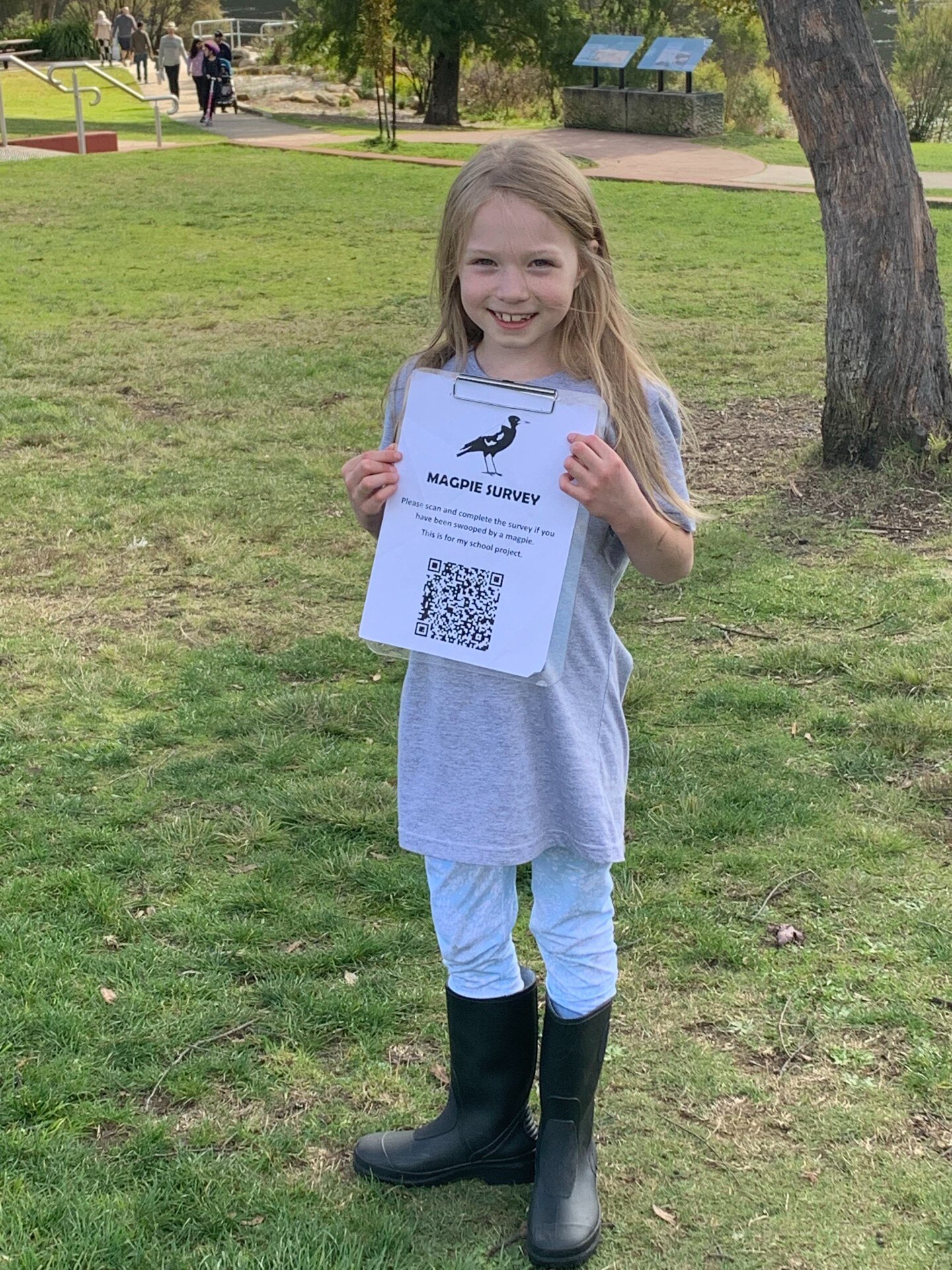 Com a ajuda da mãe, Emma criou uma pesquisa on-line e imprimiu panfletos com um código QR, depois foi ao parque local e pediu a estranhos que o preenchessem.